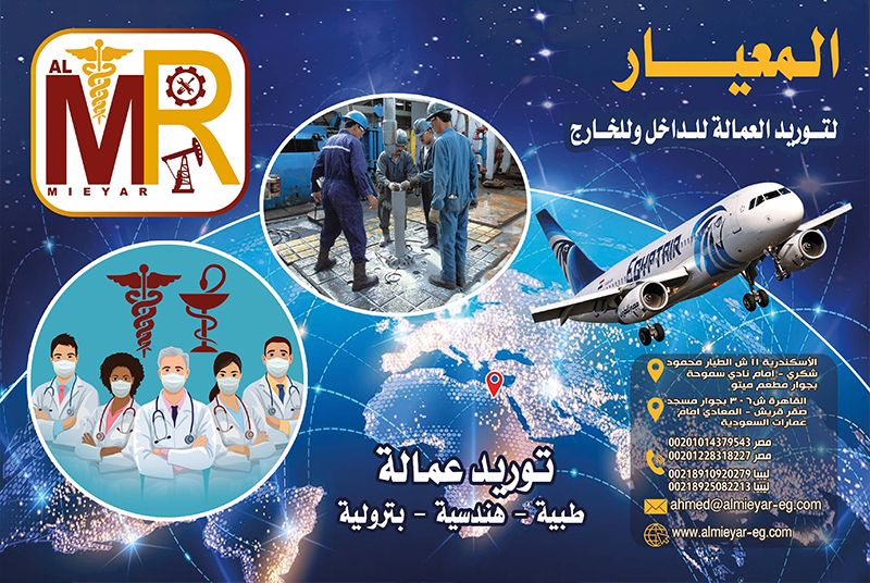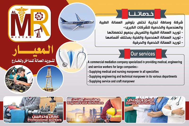 شركة وساطة تجارية تختص بتوفير العمالة المصرية الطبية والهندسية والبترولية و الخدمية للشركات الكبري